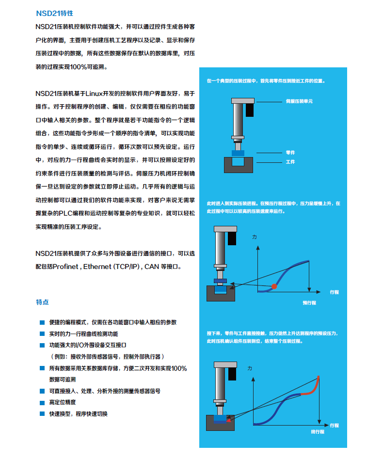 ■ 實時力-行程監(jiān)控,確保每個零件產(chǎn)品的質(zhì)量■ 全量程的高精度與重復定位精度