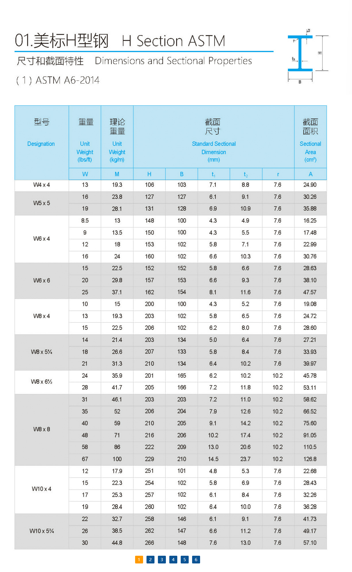 美標(biāo)H型鋼規(guī)格尺寸重量表